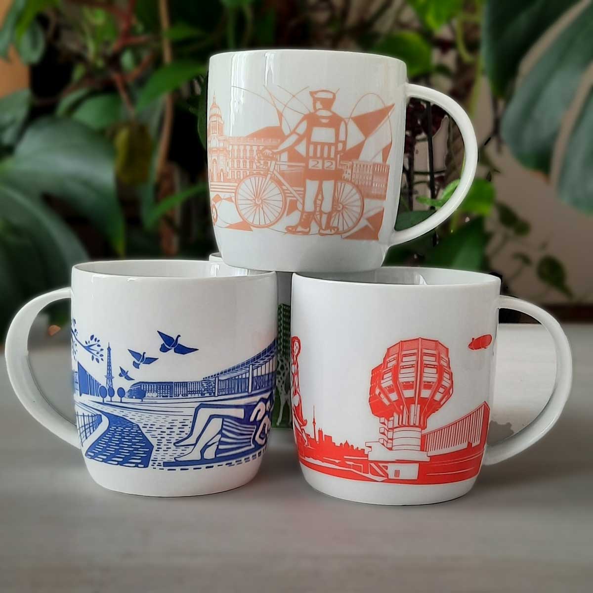 Unsere Berlin Tassen zeigen ikonische Fassadenmotive, wie vom Mathehaus der TU oder der Wohnmaschine, minimalistische Designs von Fernsehturm und Brandenburger Tor oder elegante schwarz-weiß Motive von der Nationalgalerie. Eine Berlin Tasse ist die perfekt Verbindung aus schönem, einzigartigen Souvenir oder Geschenk und praktischem Altagsgegenstand.