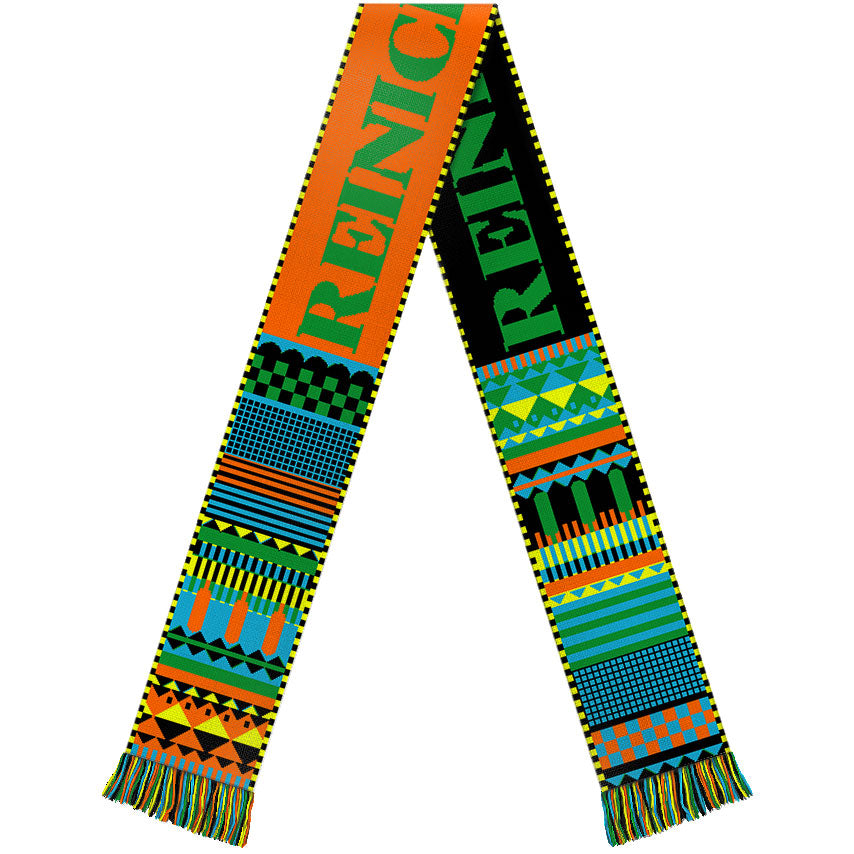 Der lange, gestrickte Reinickendorf-Schal in leuchtenden, bunten Farben fängt die Vielfalt des Berliner Nordens perfekt ein. Als besonderes Detail sind stilisierte Füchse ins Strickmuster eingearbeitet, die eine direkte Verbindung zum Wappentier des Bezirks herstellen.