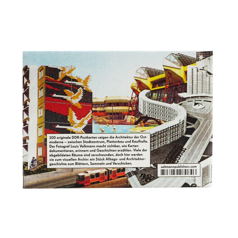 Diese einzigartige Sammlung versammelt 100 originale Postkarten aus der DDR – Zeugnisse einer verschwundenen Alltagswelt zwischen Stadtzentrum und Plattenbau, Kulturhaus und Kaufhalle.