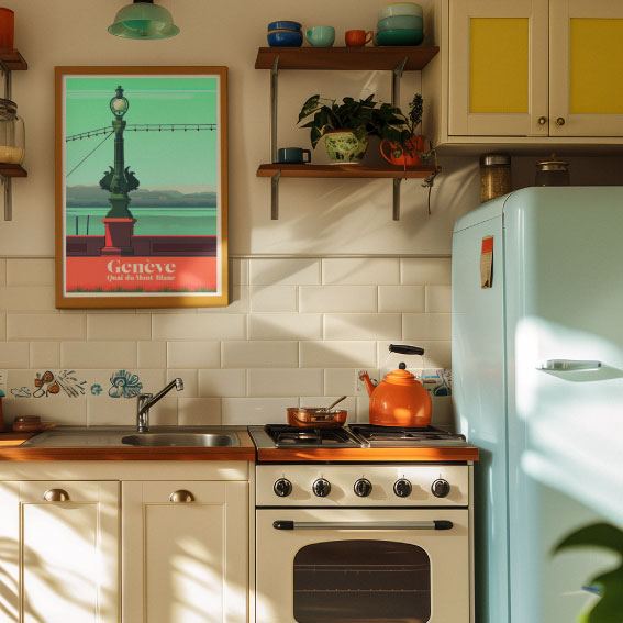 Bringe die malerische Schönheit Genfs in dein Zuhause mit unserem exklusiven Travel-Poster des Quai du Mont-Blanc. Dieses Motiv fängt die elegante Promenade am Genfersee ein: den weiten Blick über das glitzernde Wasser, die prächtigen Hotels, die sich entlang des Ufers reihen, und die einladende Atmosphäre, die zum Flanieren und Verweilen einlädt.
