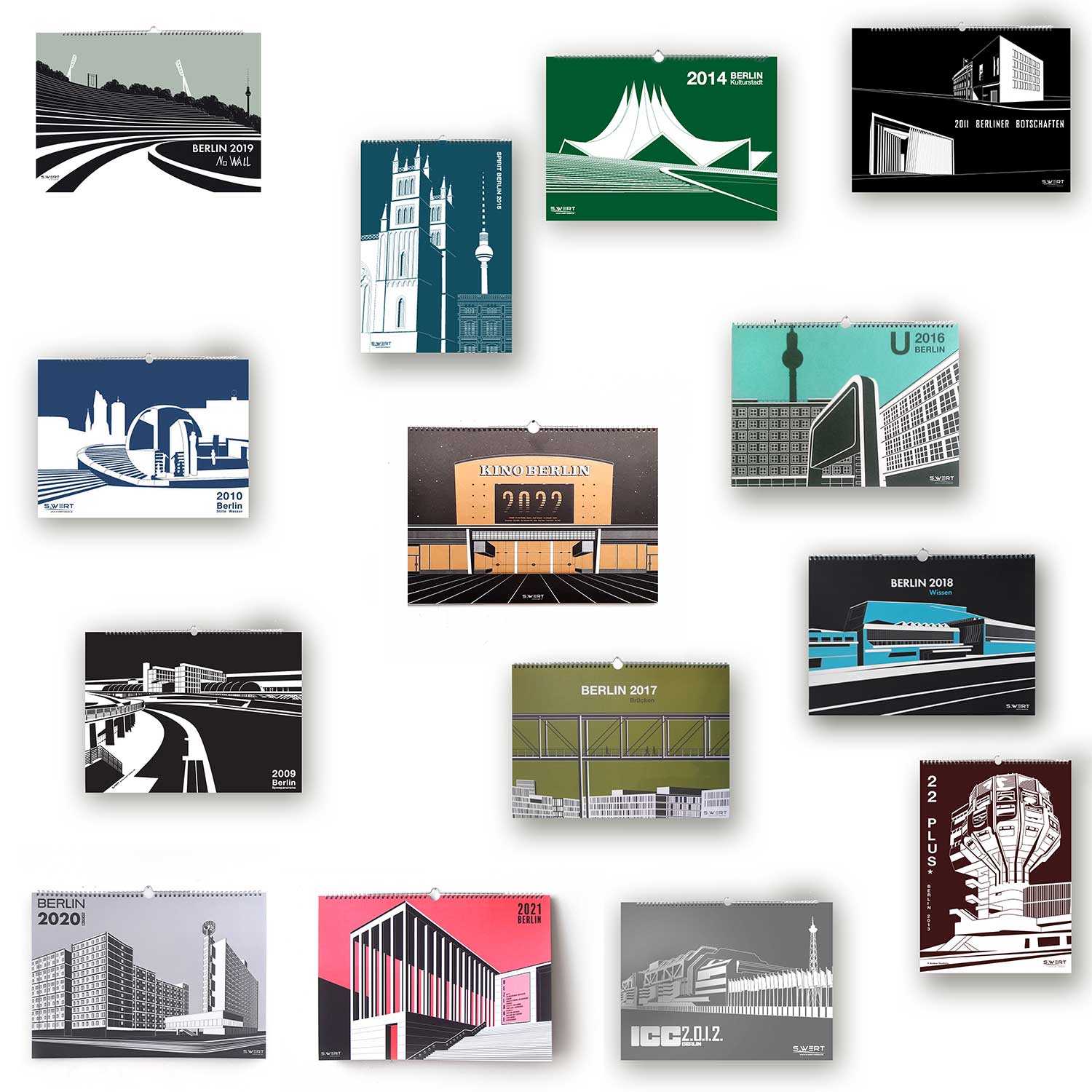 Architektur + Illustration Seit 2009 gestalten wir jedes Jahr einen Berlin Kalender mit grafischen Stadtansichten. Der Fokus liegt dabei auf Berliner Architektur. Der Kalender erscheint als „LIMITED EDITION“. Oft ist der s.wert Kalender schon im Dezember vergriffen.