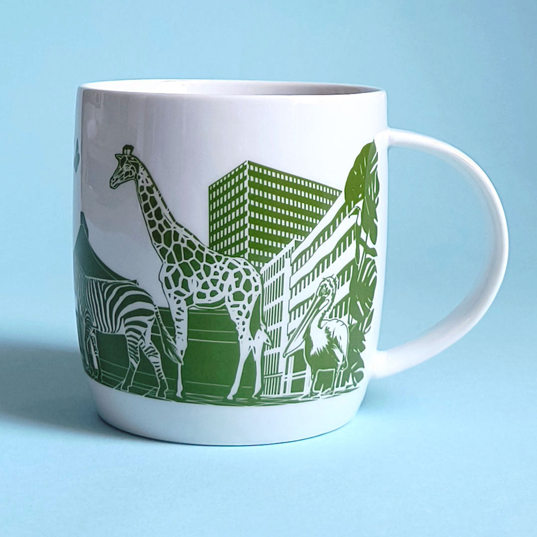 Diese Berlin Tasse zeigt den "Großstadtdschungel" der City West mit dem Elefantentor und den neuen Hochhäusern.